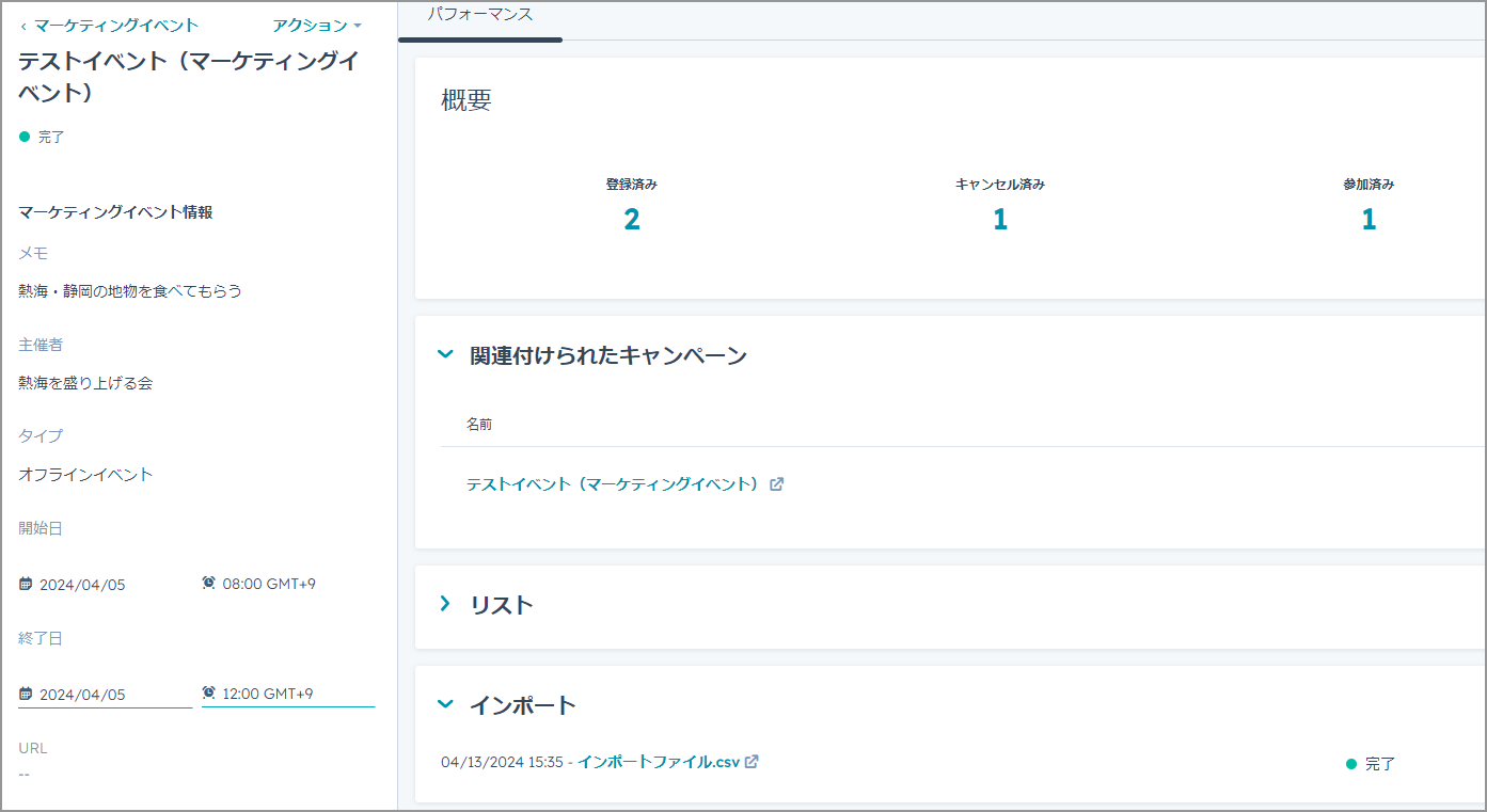 しかし、3月のアップデートで遂にイベント の参加者情報をインポートする事が出来るようになりました。これにより、展示会などのフィジカルイベントの情報も管理する事が出来るようになり、活用の幅が大きく広がりました。マーケティングイベントの使い方を詳しく知りたい方はHubSpotのナレッジベースをご覧ください。